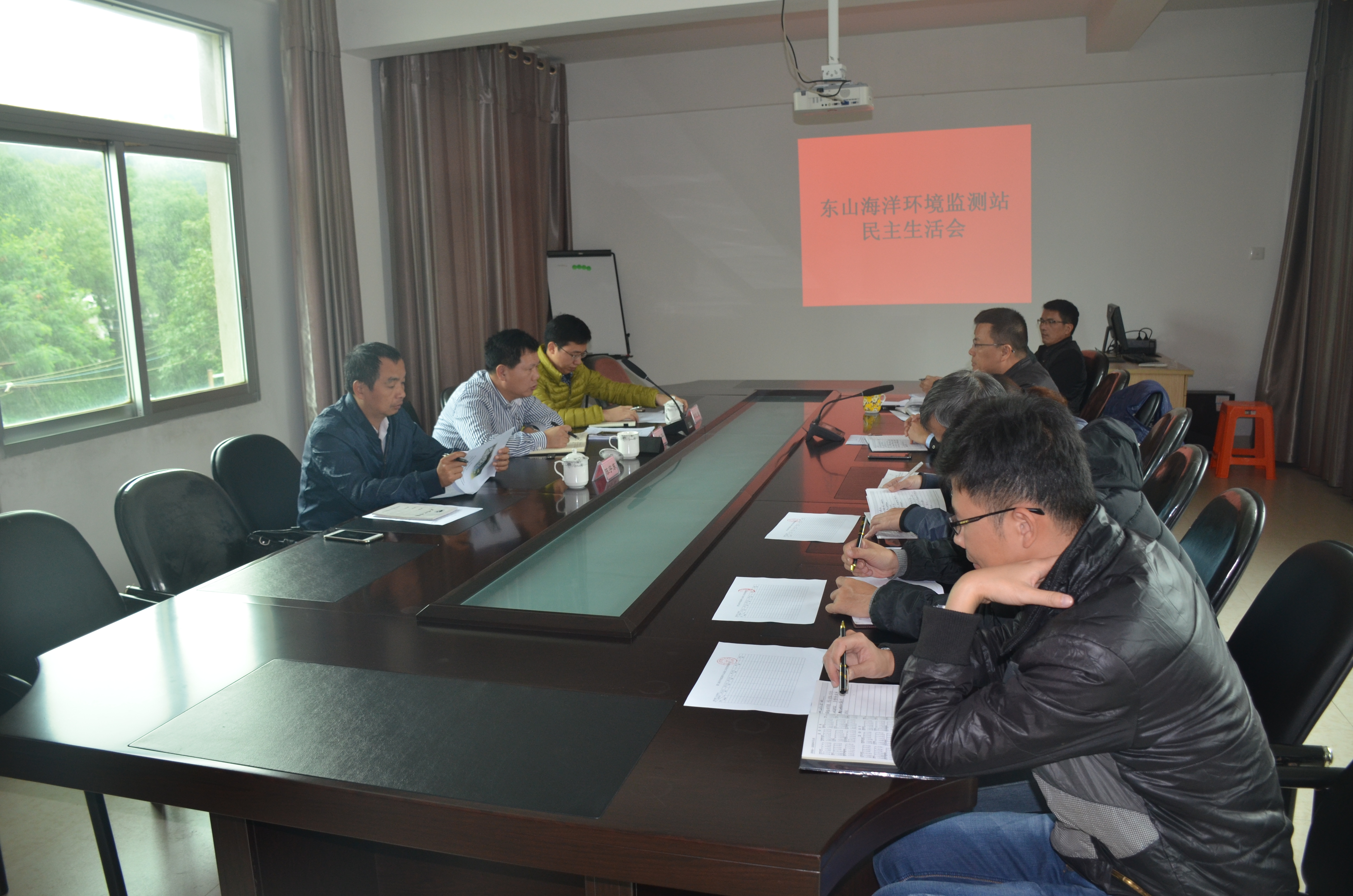 下午,首先开展海洋站站长考核工作。会上先由东山站站长林海潮对2017年东山站工作情况作进行了汇报,然后进行站长述职述廉,最后开展考核测评。考核组对东山站开展的观测、预报、监视监测和专项建设等工作表示肯定,对林海潮站长一年来履职尽责的工作情况表示认可,同时考核组也指出,东山站应加强专项服务能力建设,要创新思维做好服务工作,要求紧贴地方海洋环境保护和海洋防灾减灾的服务需求,全站职工要群策群力积极发挥各种优势,做出东山站的品牌,在专项服务工作再上一个台阶。